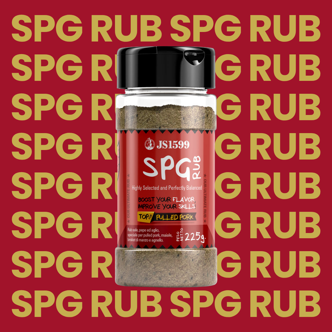 SPG è acronimo di Salt, Pepper & Garlic (sale, pepe e aglio). Una miscela dalla straordinaria complessità, composta dalle spezie più pregiate disponibili in commercio. Speciale per Pulled Pork, maiale, Brisket e agnello. Il mix tradizionalmente bilanciato in parti uguali viene strofinato sulle pietanze per conferirgli quel gusto unico e così caratteristico insieme al classico bark, la crosticina esterna che perfettamente si accompagna alla morbida succosità delle carni.